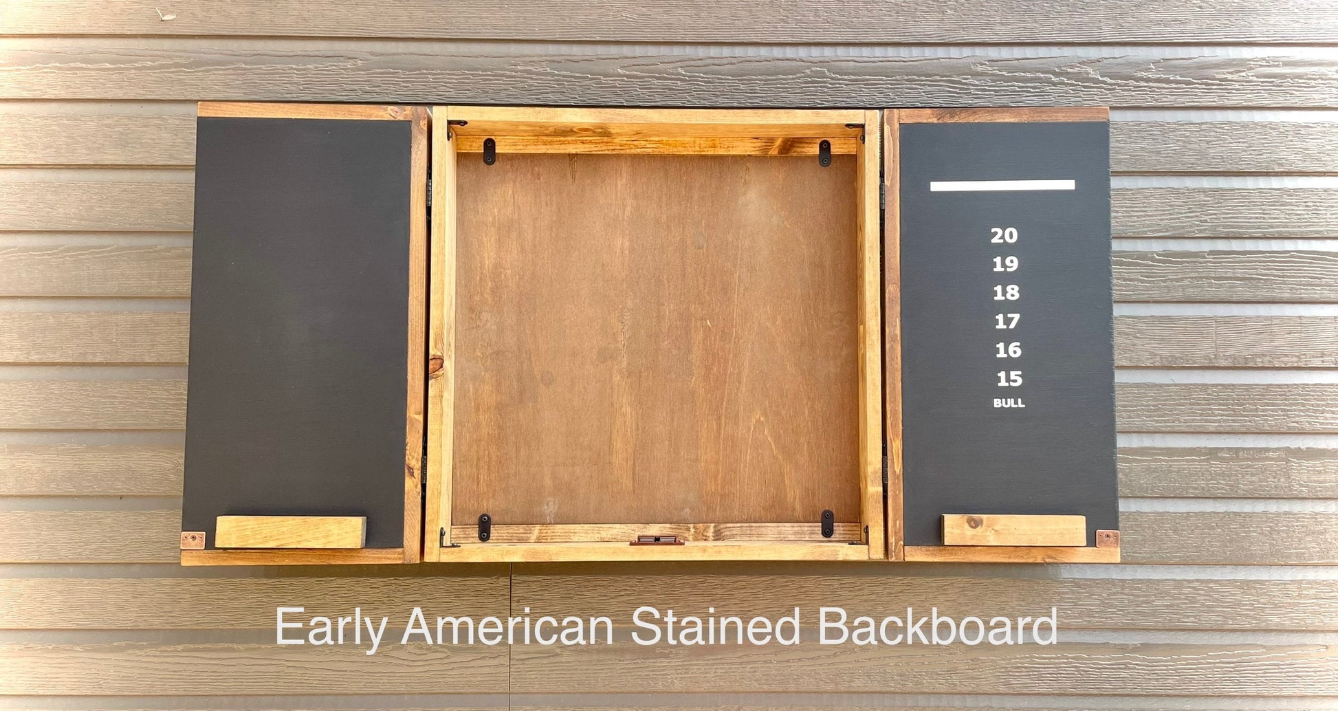 Chalkboard paint on each cabinet door is included or choose to leave the sides stained. (The dartboard cabinet will automatically come with the chalkboard paint unless otherwise noted)