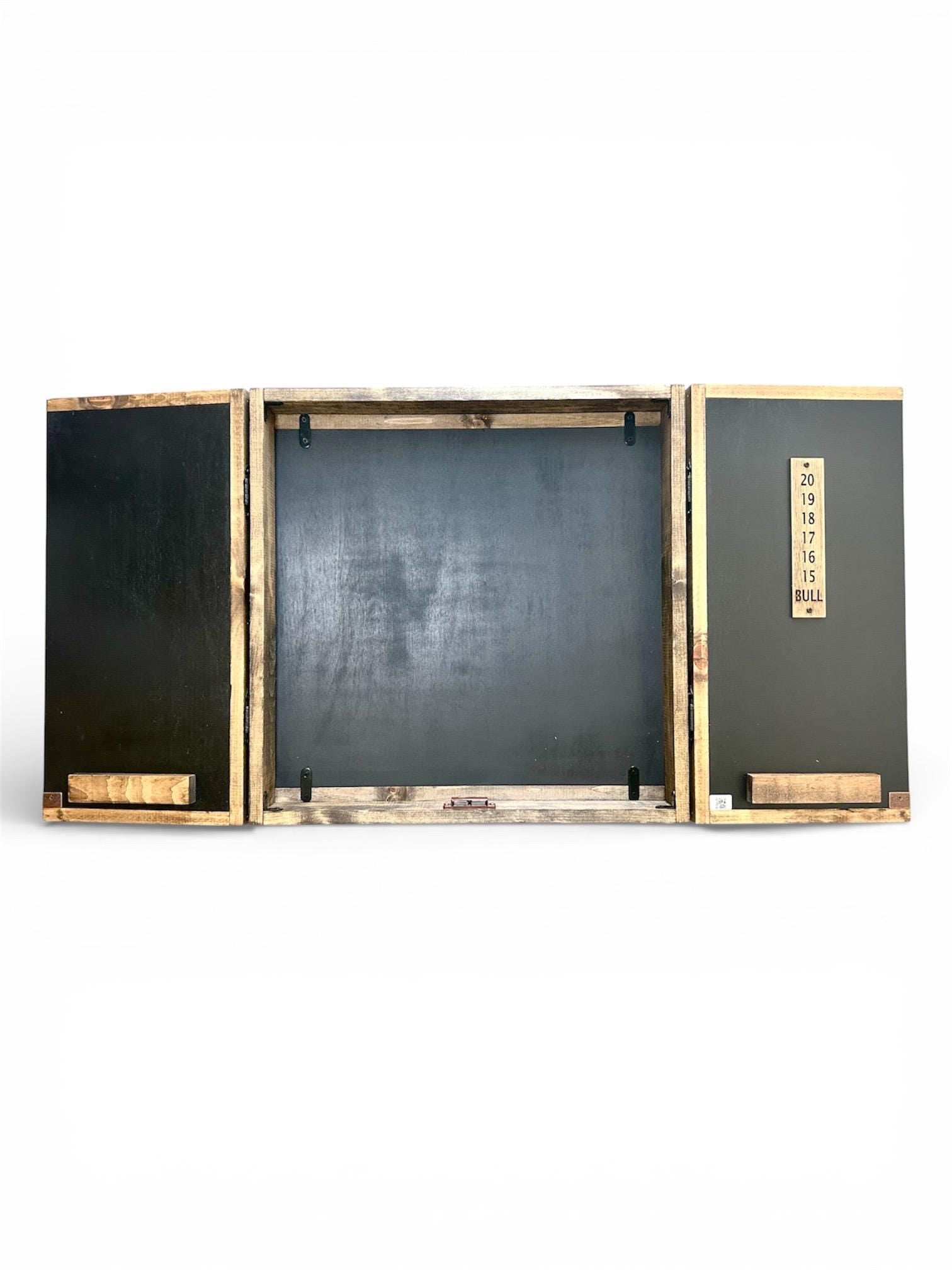 Black chalkboard paint on each cabinet door is included or choose to leave the sides stained. Also, there is an option to have a vinyl stencil scoreboard overlaying the black chalkboard paint on ONE door for an additional charge.