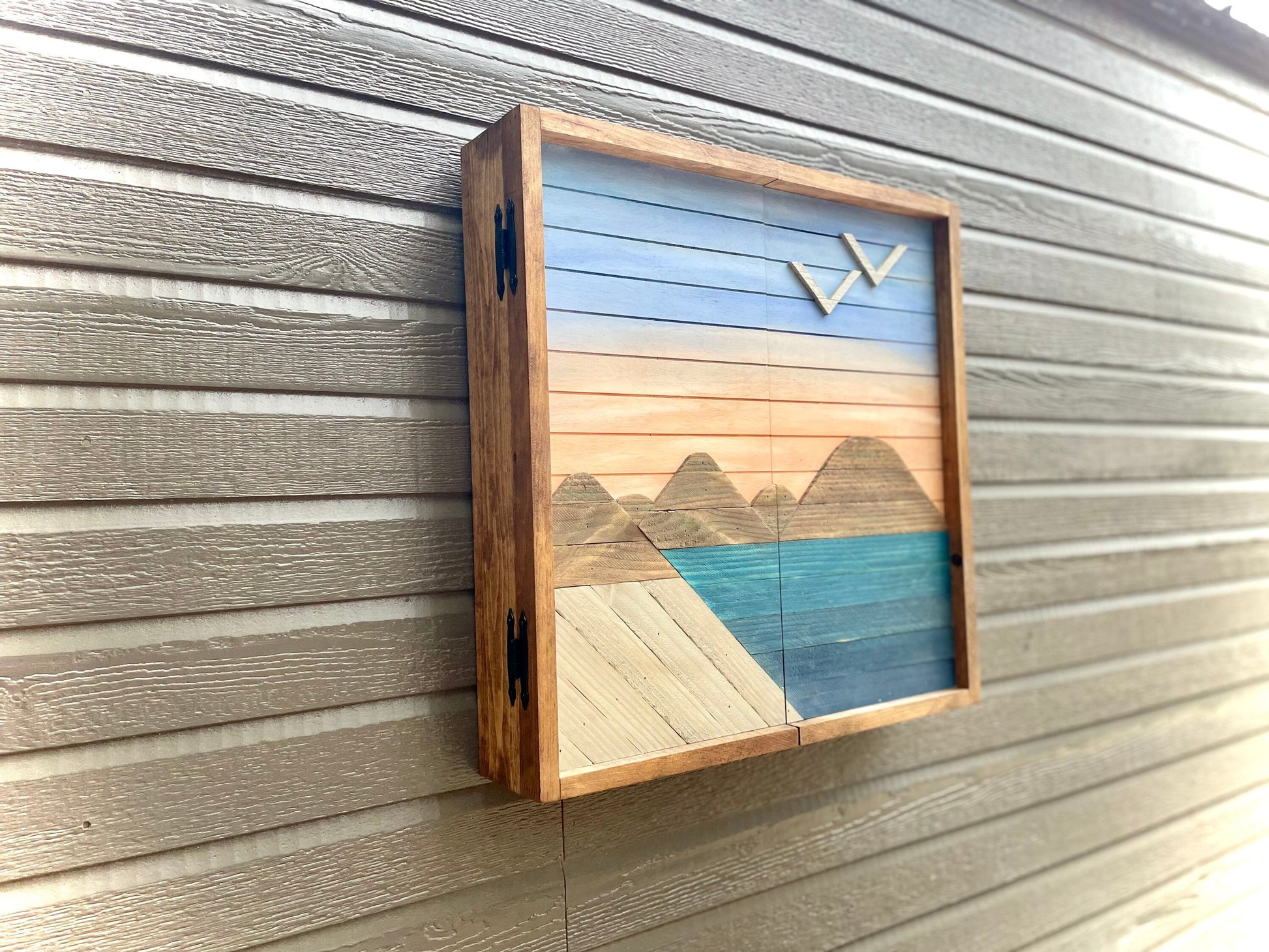 Rustic Dartboard Cabinet - Mountains Meet the Sea - Rustic Cabinet - 24”x24” - Game Room / Man Cave Art - Wall Decor
