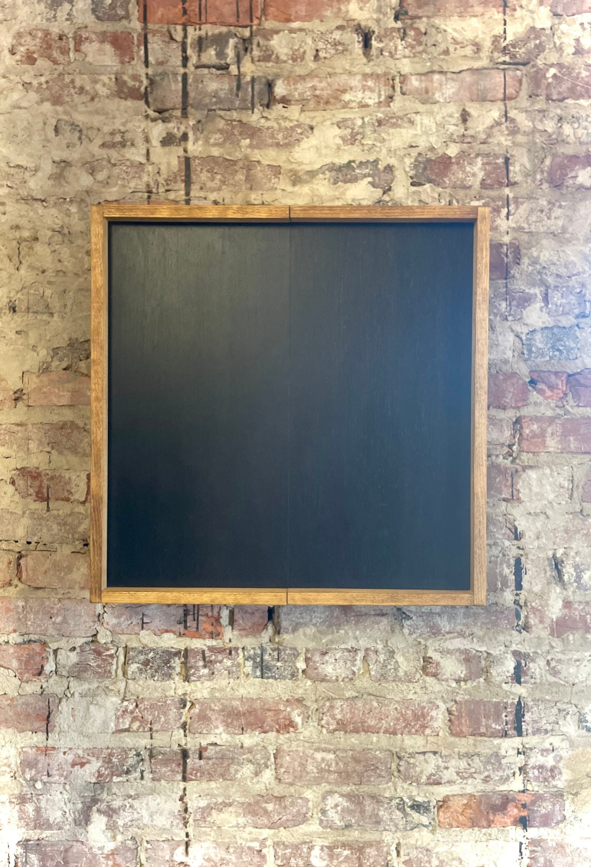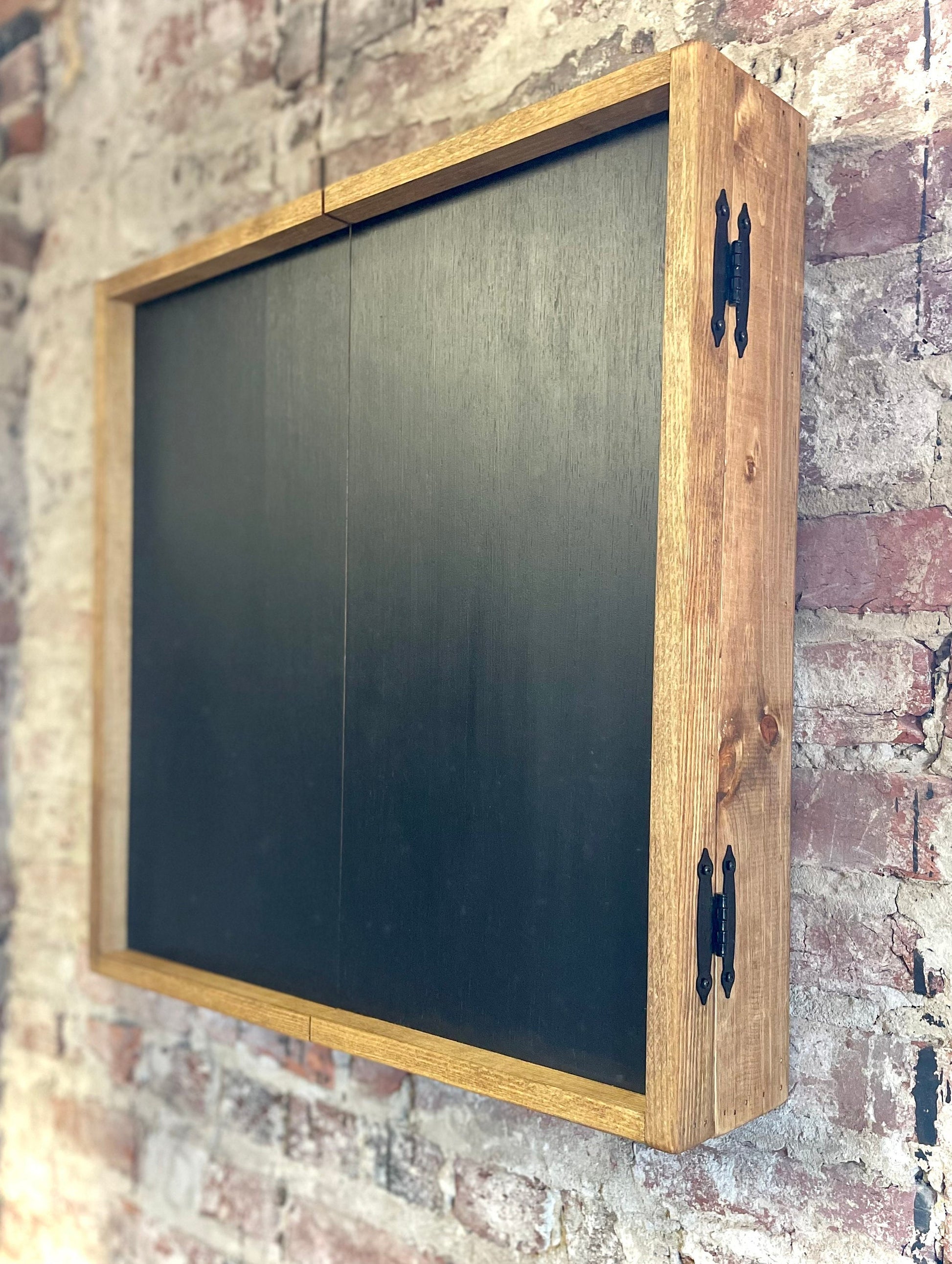 Black chalkboard paint cabinet front- Custom Rustic Art Dartboard Cabinet