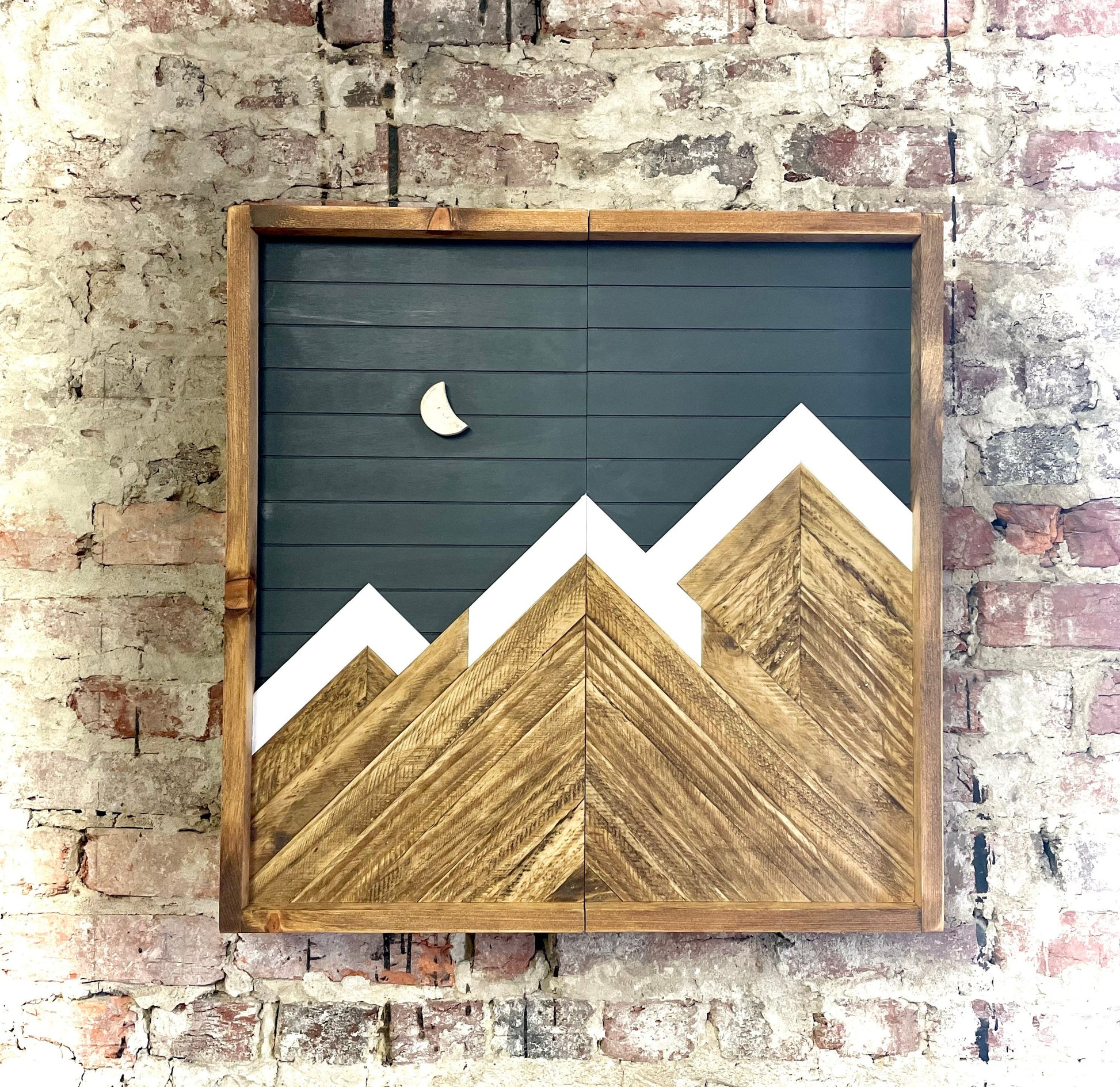 This piece is made to order. The picture displayed is the template and will be the same design but may have different wood grains. The colors of the mountain may vary based on the lath/wood used. This is a rustic piece, it will have unsanded, rough, and/or irregular markings, dimensions, and appearance.