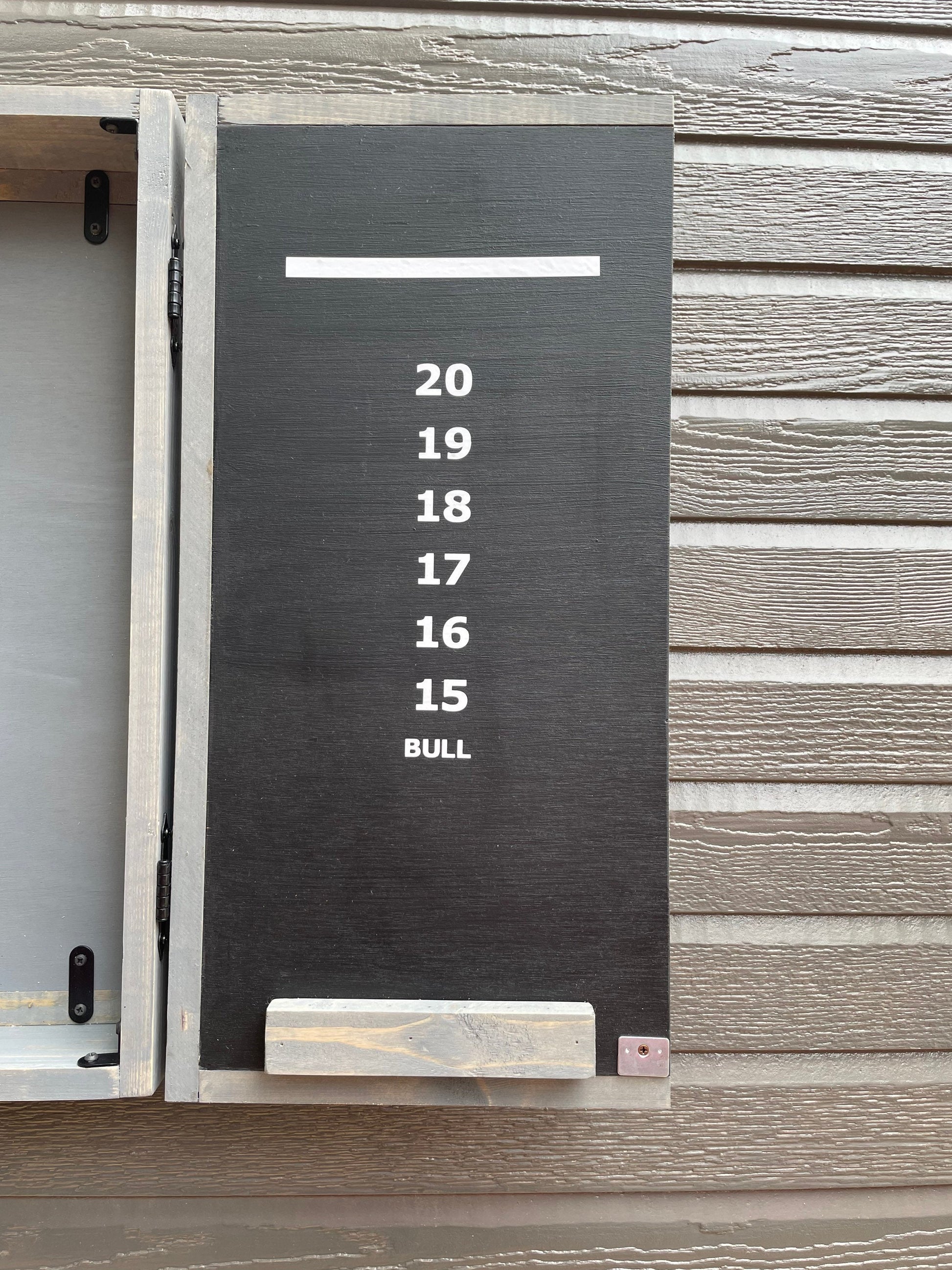 Black chalkboard paint on each cabinet door is included or choose to leave the sides stained. Also, there is an option to have a vinyl stencil scoreboard overlaying the black chalkboard paint on ONE door for an additional charge.